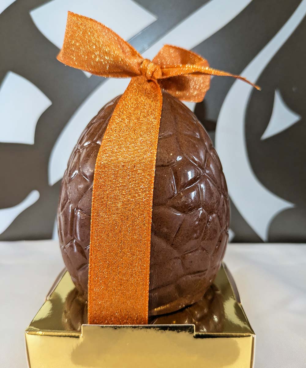 Nos maîtres chocolatiers ont réalisé de délicieux œufs de Pâques au chocolat au lait, noir ou blanc garni de sa friture pour le bonheur des petits mais aussi des grands.